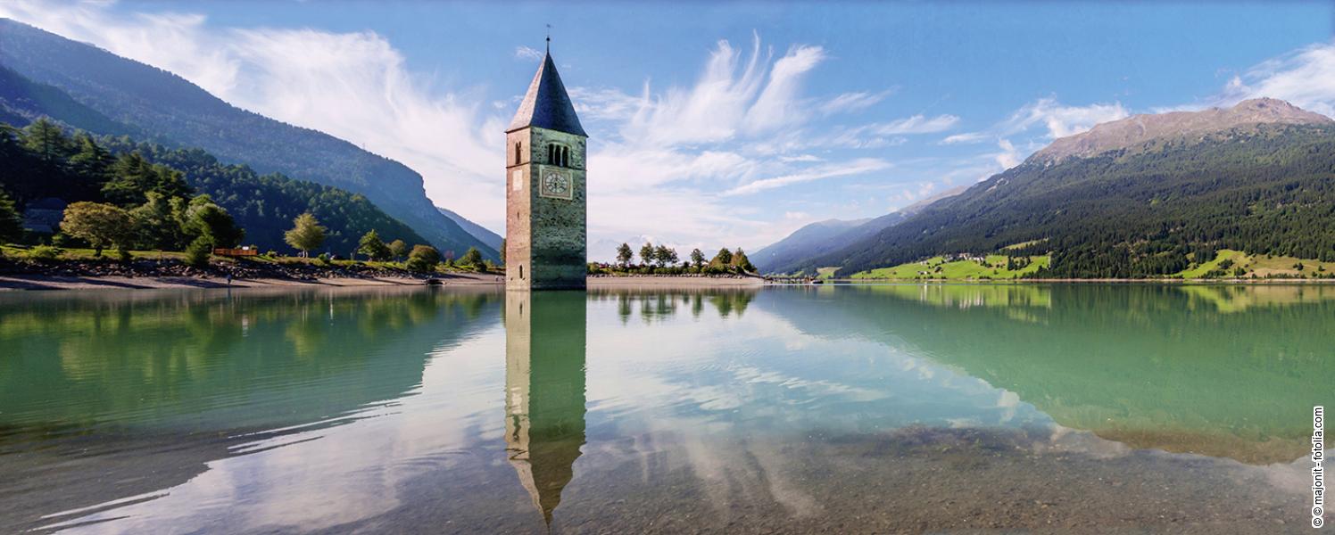 Nach dem Frühstück führt Sie der heutige Ausflug durch das obere Inntal in das wunderschöne Engadin und über den Ofenpass nach Glurns, der kleinsten Stadt Südtirols. Hier erlebt man noch mittelalterliches Flair. Zum Mittag sind Sie zu einem leckeren Jausenbrett eingeladen. Die Weiterfahrt führt über den Reschenpass. Bekannt ist das Fotomotiv des Kirchturms im See. Abendessen im Hotel.